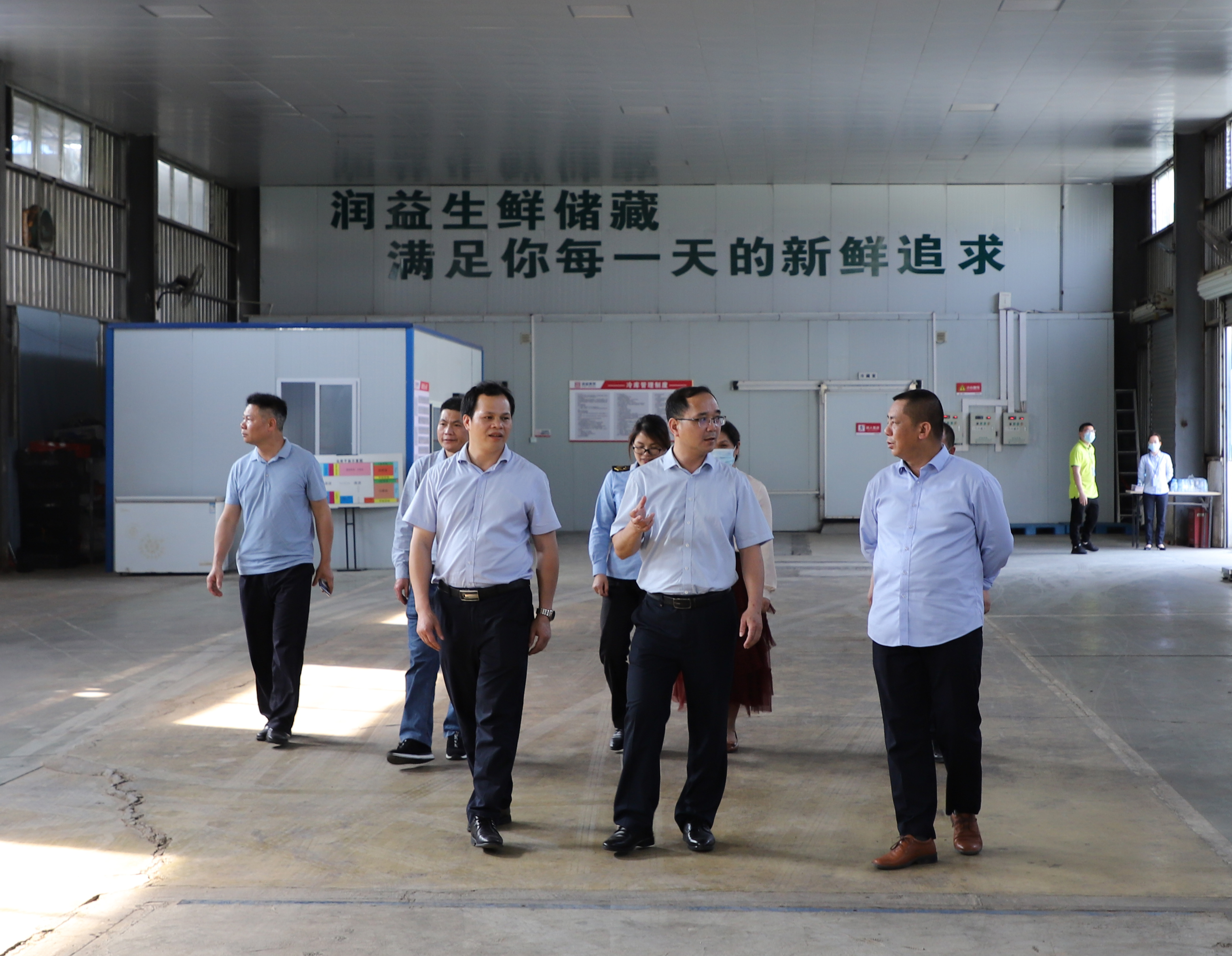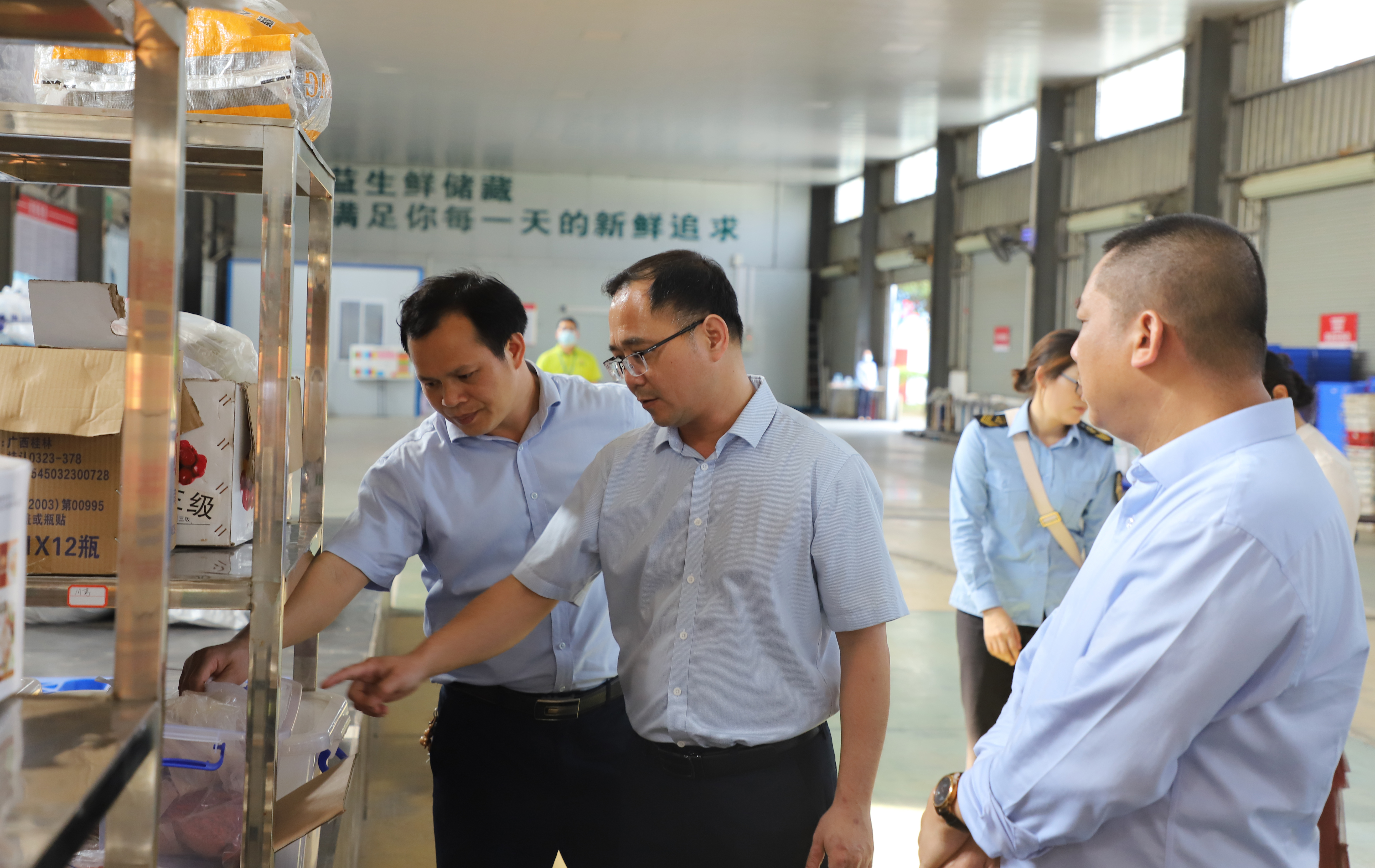 ????????3月19日,百色市市場監(jiān)督管理局總工程師黃承忠率隊到潤益商貿公司開展春季食品安全調研檢查工作,右江區(qū)市場監(jiān)管局、益眾公司等有關負責同志陪同調研。