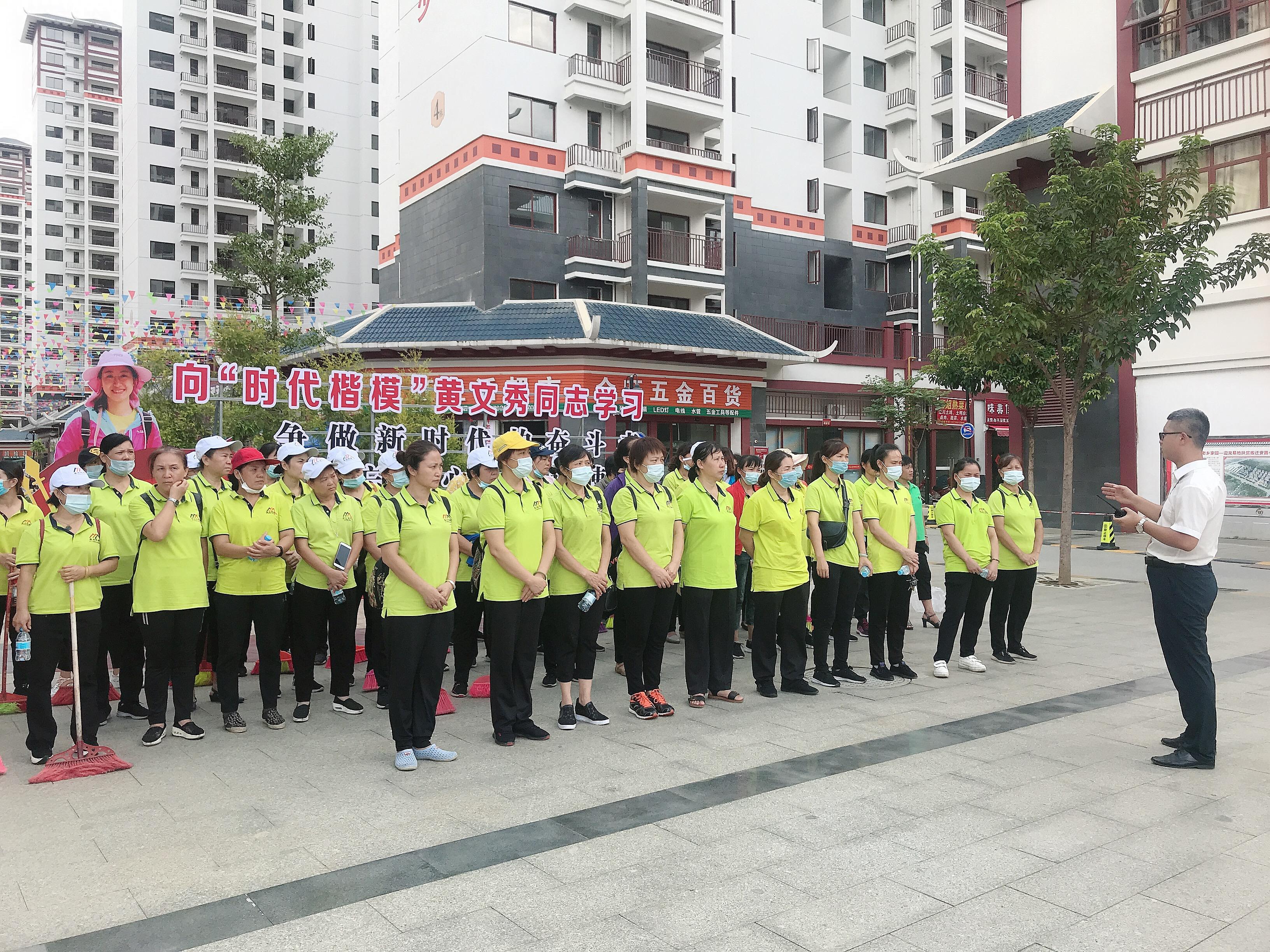 ????????為向黃文秀同志學習熱愛家鄉(xiāng)、服從組織、無私奉獻的精神,近日,益眾托管公司組織各校區(qū)直屬班組員工到老鄉(xiāng)家園—迎龍易地扶貧搬遷安置點開展“學文秀、創(chuàng)先鋒”主題活動。